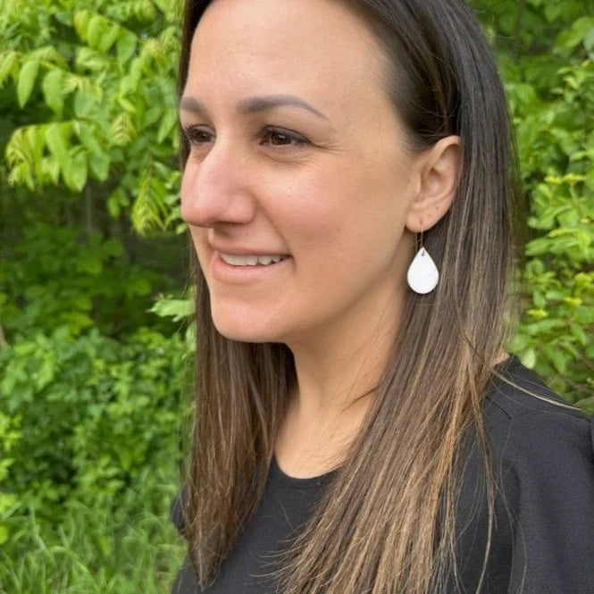 The backs of each earring reveal the natural texture of raw leather - beautifully organic & full of character. Every piece is fully dyed to bring out a rich, polished finish from front to back.